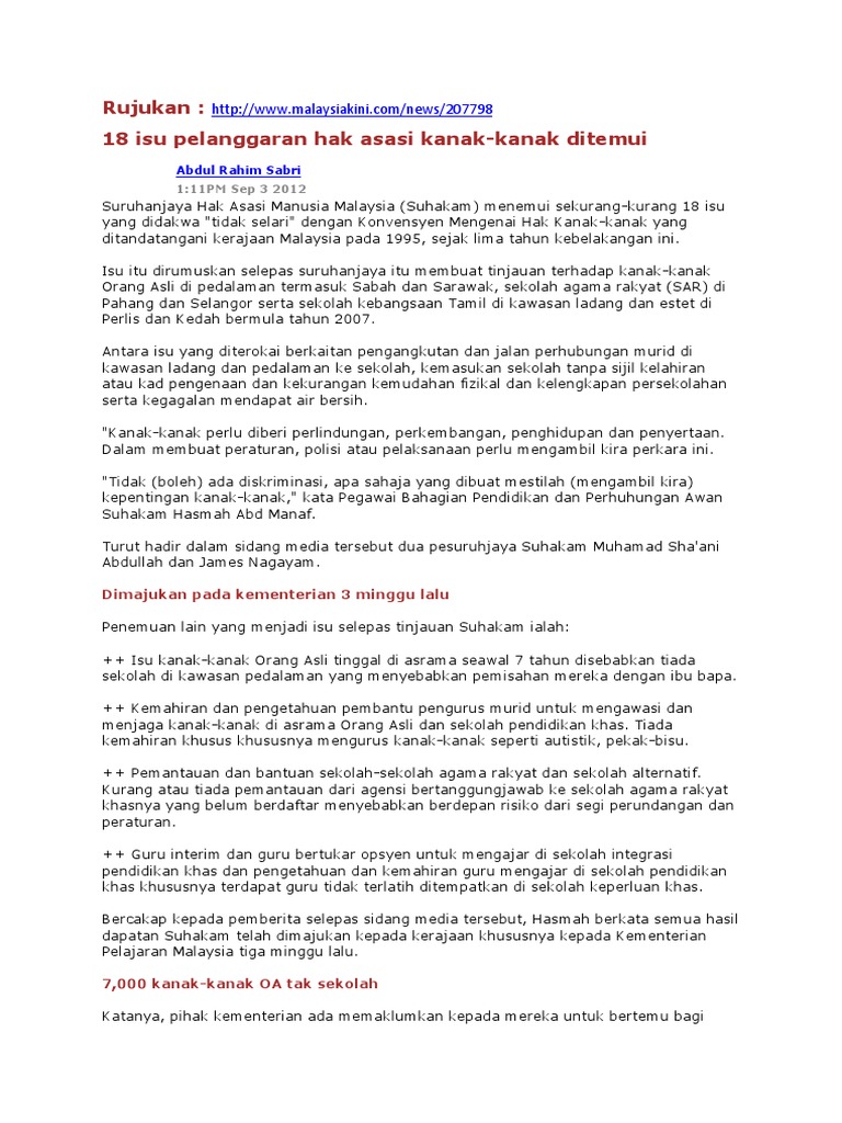 This article aims to critically discuss problems and difficulties in extracting evidence from children during court proceedings, with reference to the provisions of relevant statutes in malaysia. Though uncrc is not a part of our domestic law but its influence on many. Di malaysia merupakan isu yang serilzg diperbahaskan. Pelbagai laporan tempatan dan luar negara khas yang dapat dijadikan iktibar dan pengajaran buat para pembaca. Rentetan daripada ini, kementerian pembangunan wanita, keluarga dan masyarakat telah menggesa pejabat peguam negara dan ketua polis negara agar menyiasat kes.